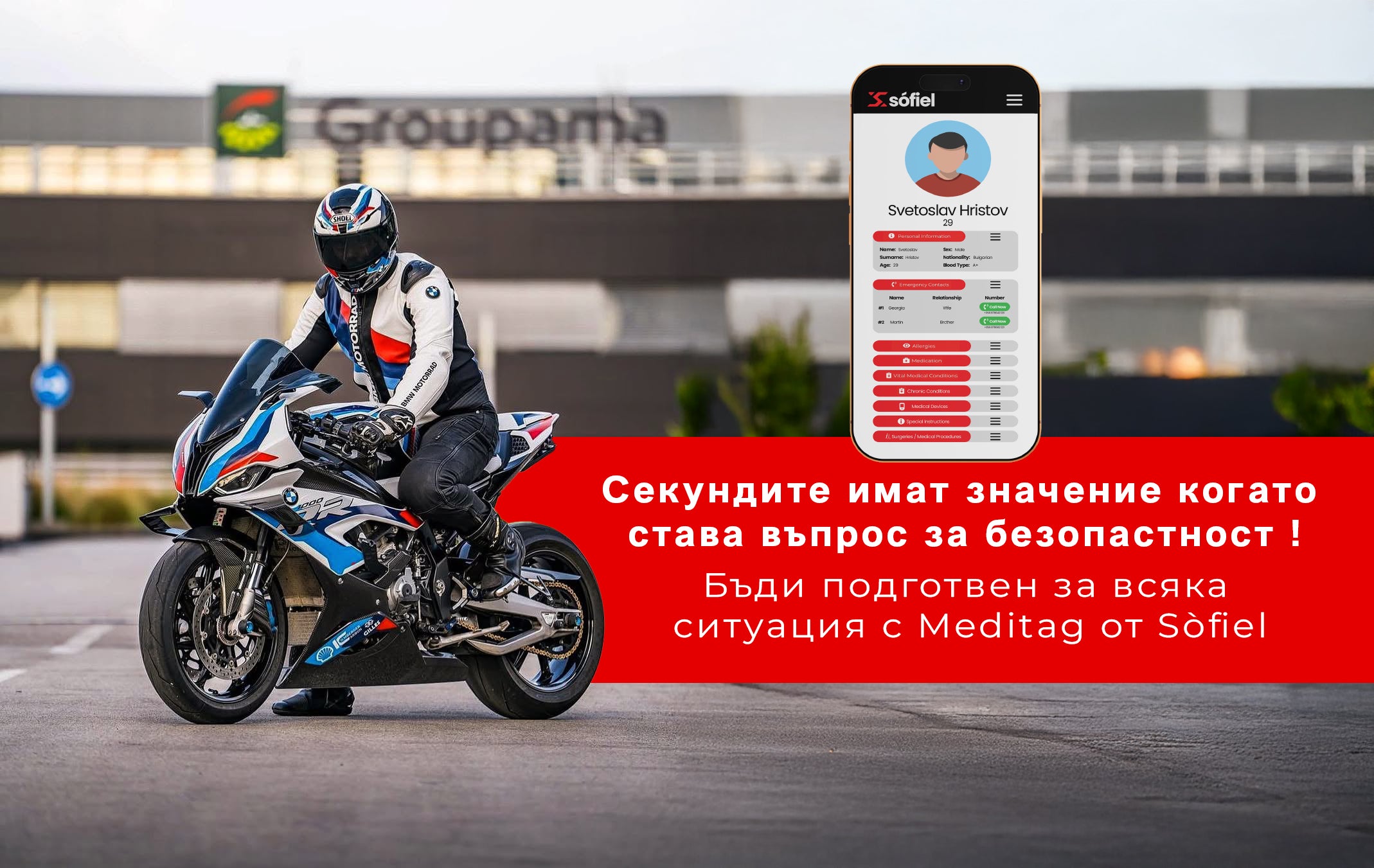 Sofiel Meditag може да бъде сканиран с всеки смартфон и отвежда спасителите директно до твоя защитен онлайн профил, където се съхраняват ключови данни, нужни в критична ситуация.